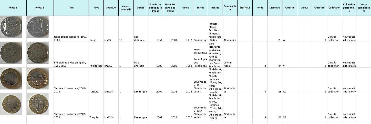 Vous pouvez créer vos propres collections personnelles, unies par une variété de sujets. Par exemple, une liste pour les pièces en euros, une liste pour les pièces en tombak ou une liste de pièces d'animaux.